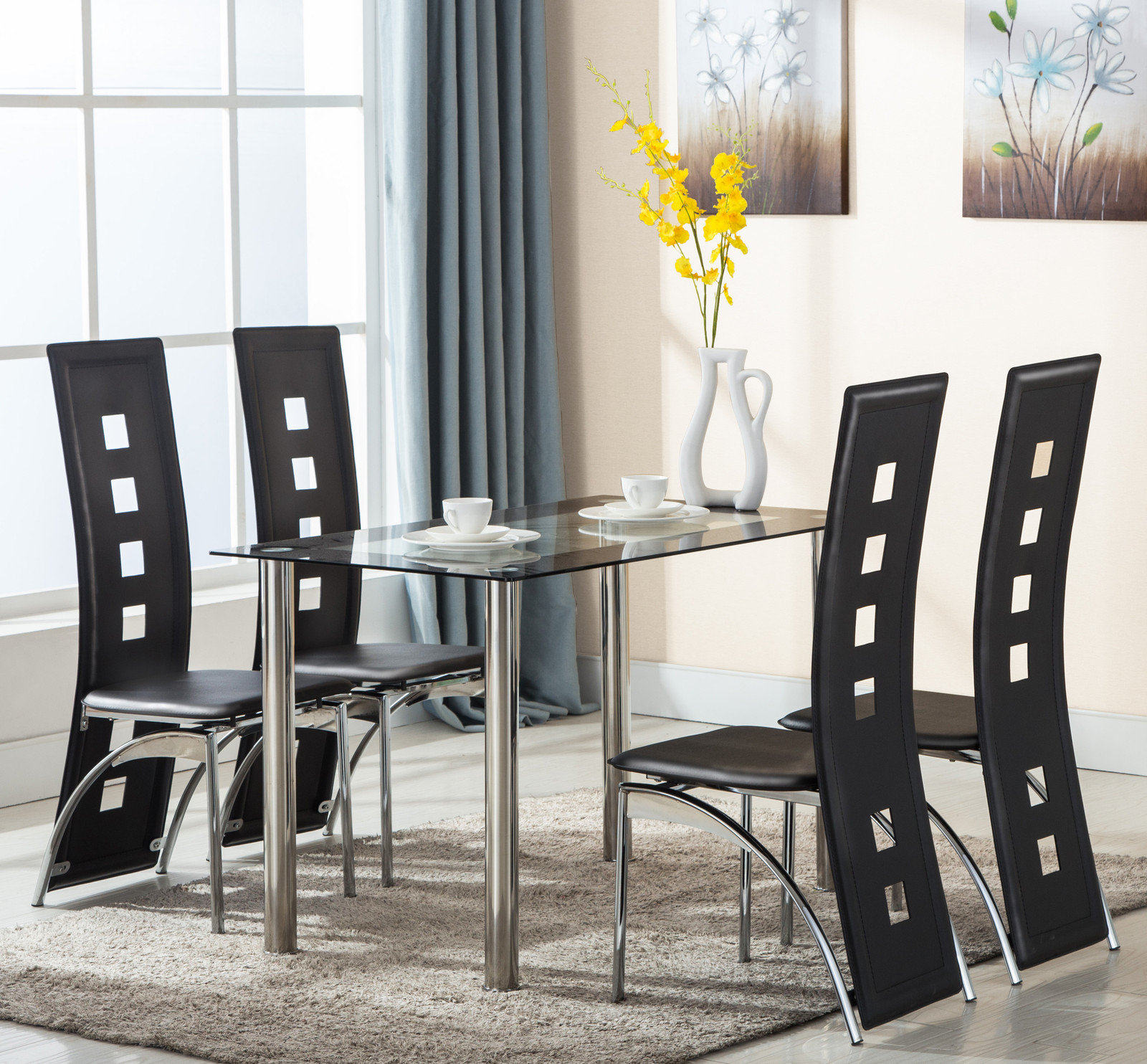 5 Piece 4 Chairs Dining Table Set Round Glass high Back
