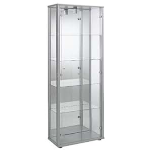 Silver Double Glass Door Display Cabinet with 4 Moveable