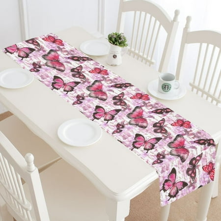 MYPOP Pink Butterfly Table Runner Placemat 16x72 inches