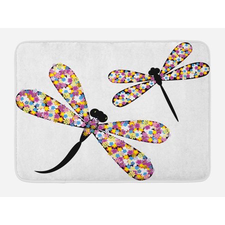 Modern Bath Mat, Butterfly and Dragonflies with Colorful
