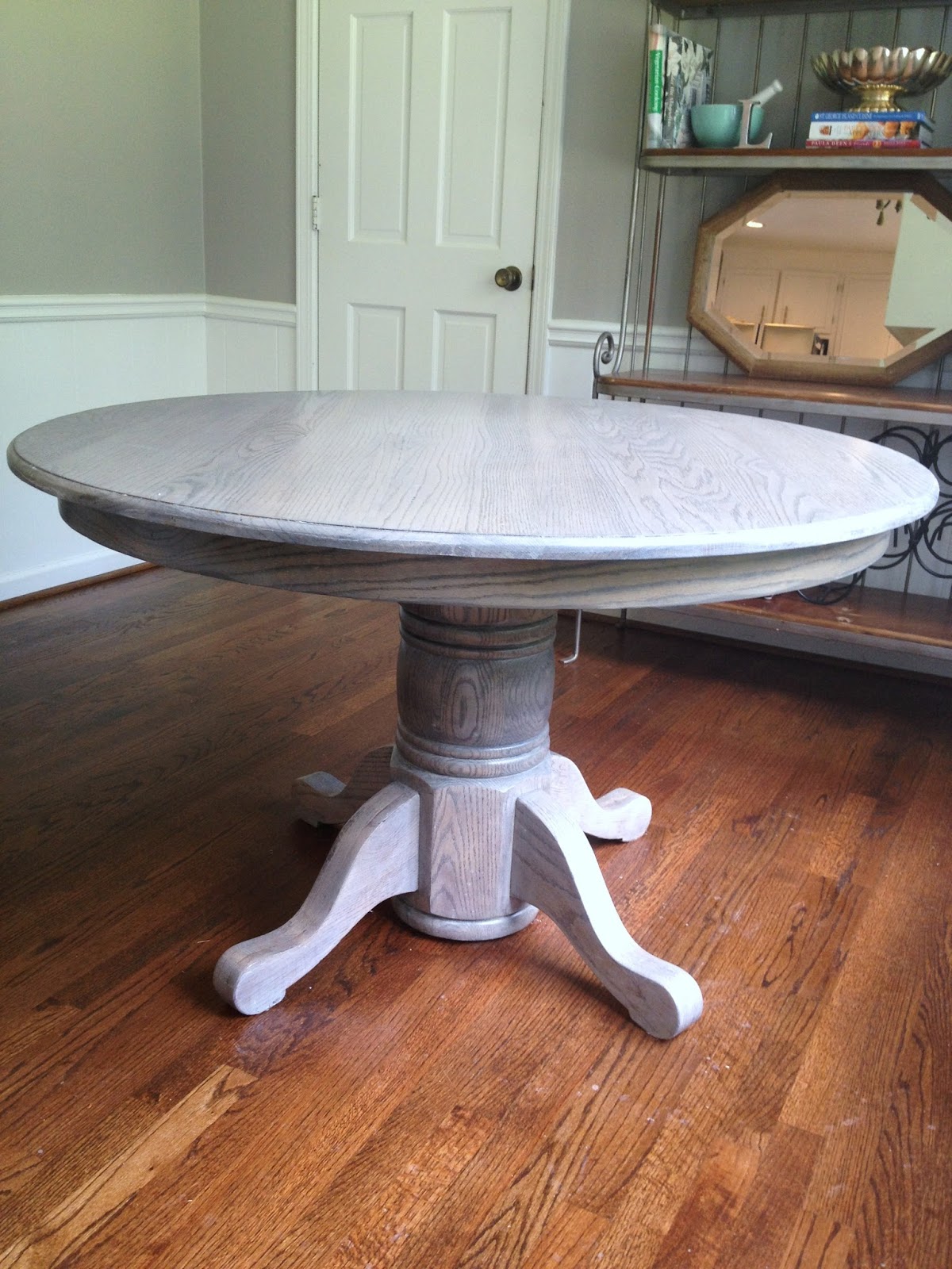 Round dining table stripped and refinished on top with