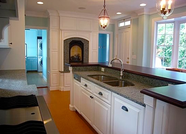 Elegant White Kitchen with Fireplace and Granite