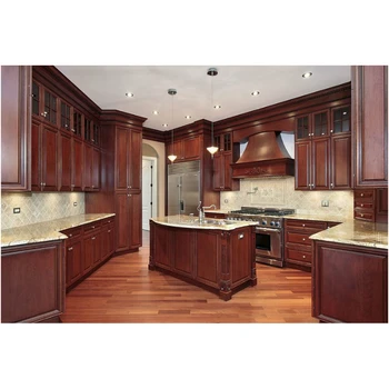 Free Design Classic And Elegant Mahogany Modular Kitchen