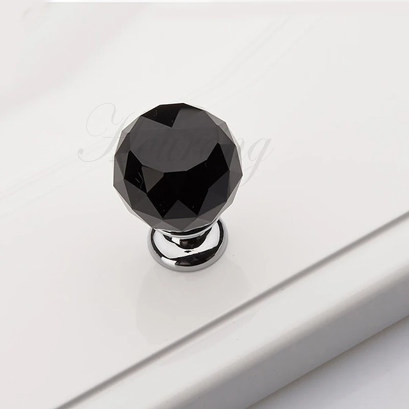 5 pcs 30mm Black Glass Crystal Kitchen Cabinet Knobs And