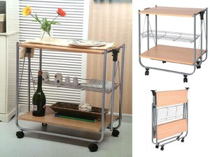 WOODEN KITCHEN SERVING TROLLEY PORTABLE FOLDING DINING