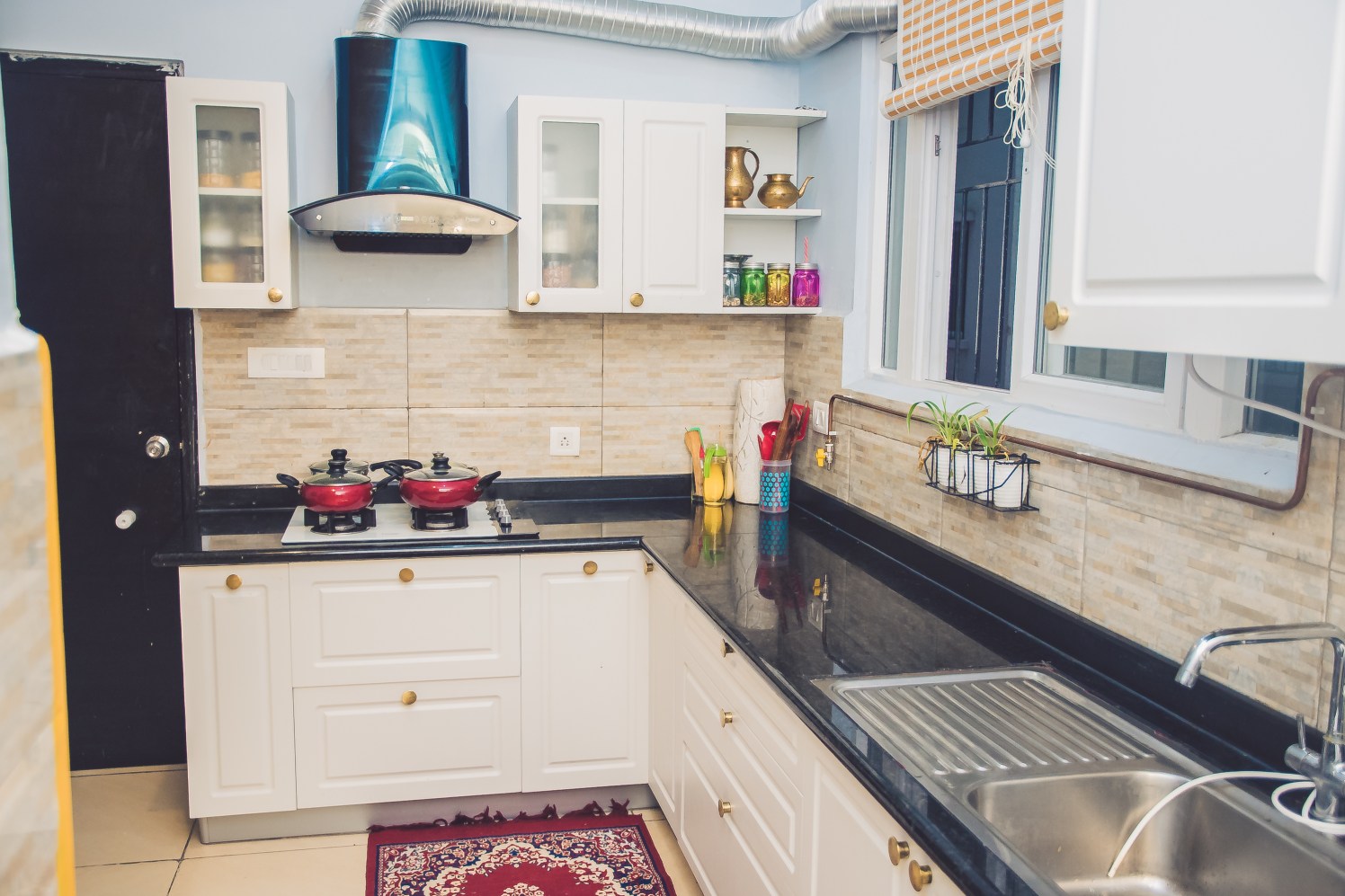 White Modular Kitchen with L Shaped Counter by Shyama