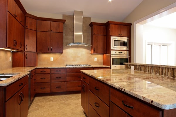 Beautiful traditional cherry cabinets with granite