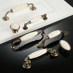 Luxury White Ceramic Door Handles Cabinet Knobs Antique