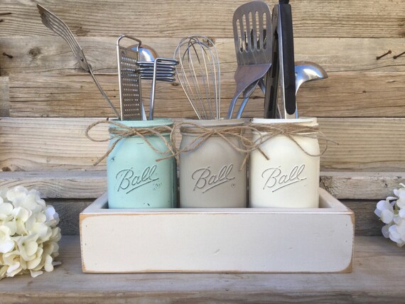 Mason jar utensil holder Kitchen Utensil organizer Kitchen