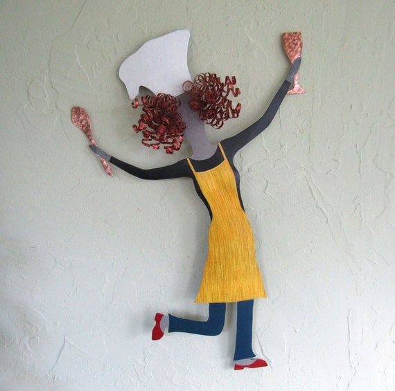 Kitchen Wall Art Lady Chef Sculpture Recycled Metal Wall Art