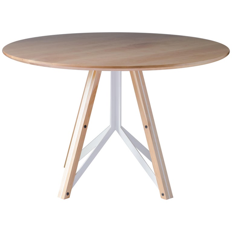 Trestle, Modern Birch and Powder Coated Steel Round Dining