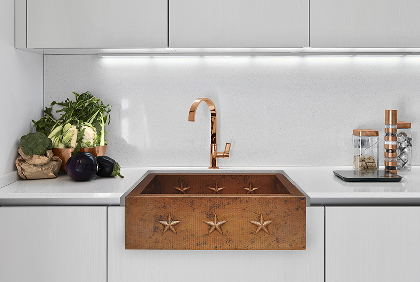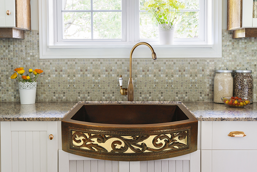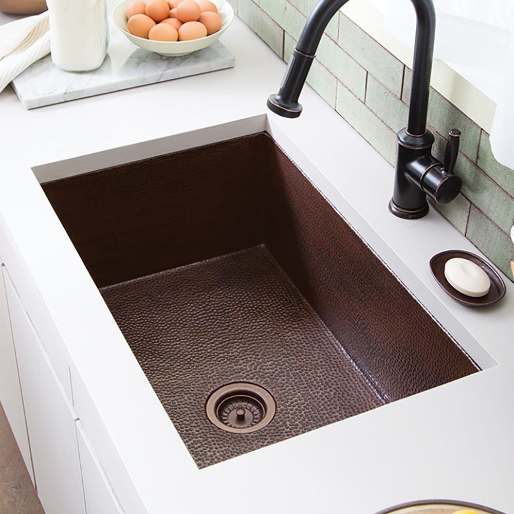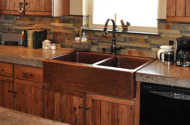 Kitchen , Fine Looking Copper Kitchen Sink : Double Bowl
