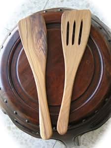 Olive Wood Kitchen Utensils Set of 2 - Handmade Cooking or