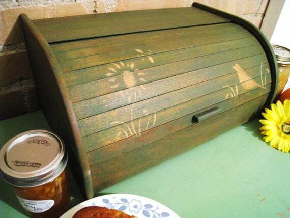 Olive Green Wooden Bread Box Kitchen Decor