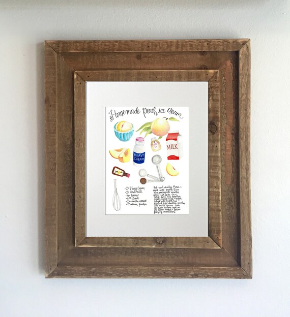Watercolor Recipe Print: Peach Ice Cream Kitchen Decor