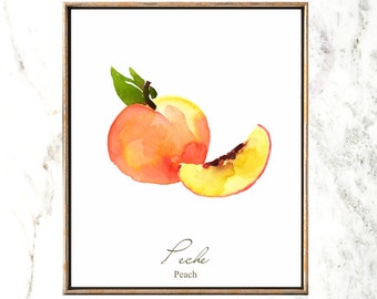 peach watercolor peach print peach art print fruit print
