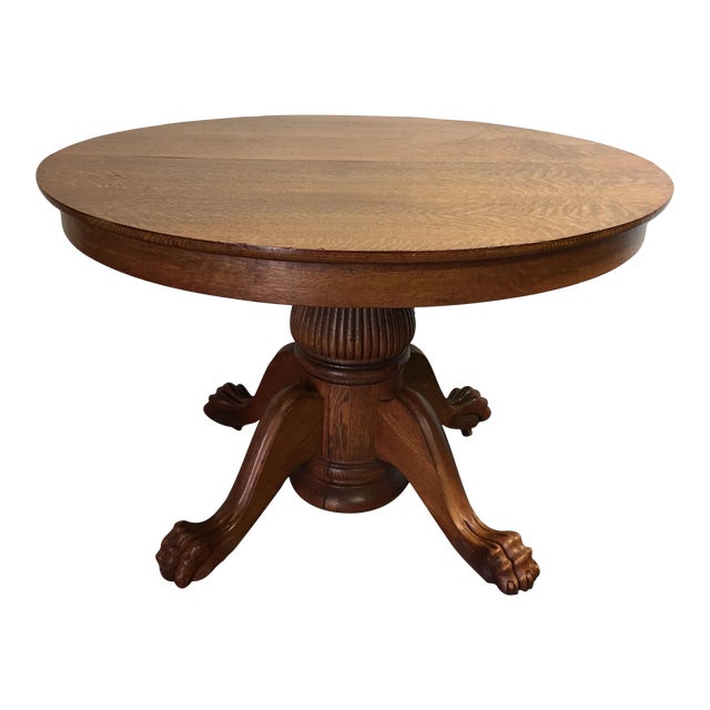 Antique Victorian Tiger Oak Round Dining Table | Chairish