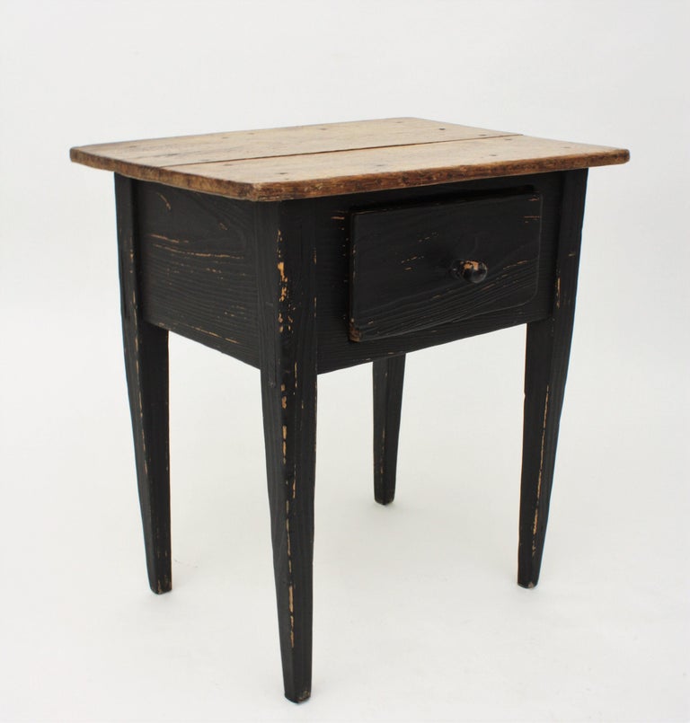 1920s Spanish Rustic Black Painted Pine Farm Kitchen Table