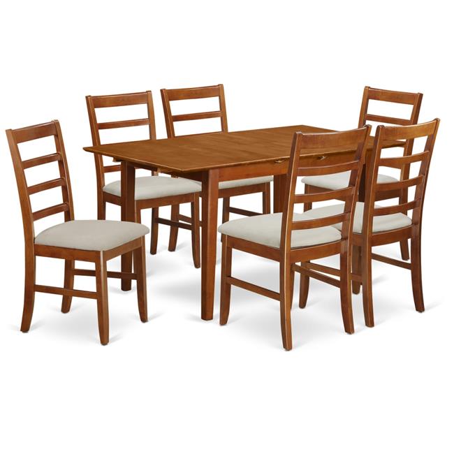 Set Rectangular Kitchen Table with Leaf & 6 Wood Seat