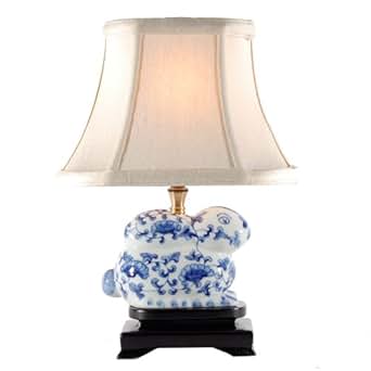 Small Blue & White Porcelain Bunny Table Lamp - Small